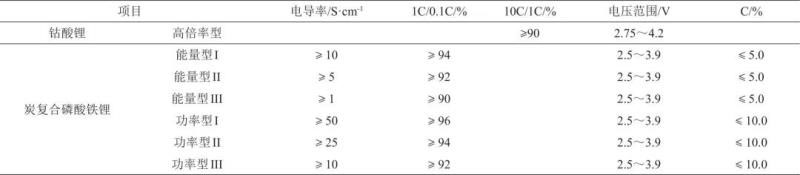 GB/T 30835—2014《鋰離子電池用炭復合磷酸鐵鋰》倍率標準有些牽強,1 C倍率太低,幾種型號的指標拉不開差距,能量型I的電導率和倍率竟然優(yōu)于功率型Ⅲ,容易引起誤導,建議下一次修訂時簡化分類。