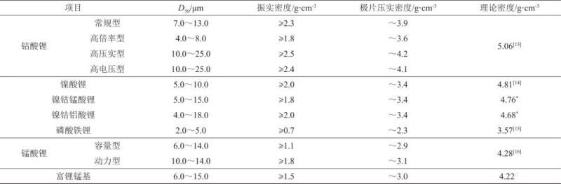 鋰離子電池體積能量密度很大程度上取決于活性物質密度。正極材料的密度與其所含元素的原子量、晶體排布方式、結晶程度、球形度、顆粒大小及分布、致密度等密切相關,受制備工藝影響。正極的密度分為松裝密度、振實密度、粉末壓實密度、極片壓實密度、理論密度等。