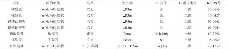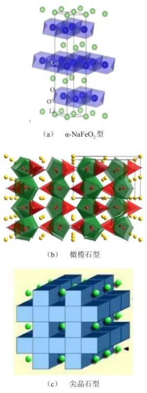 標準中涉及的鋰離子電池正極材料的晶體結構主要分3類:α-NaFeO2層狀型、橄欖石型、尖晶石型(圖4)。
