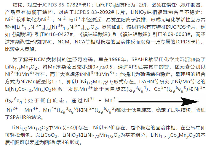 在鋰離子電池正極材料的研究方面,德裔美國學者GOODENOUGH教授作出了巨大貢獻:他1980年就職于英國牛津大學期間發(fā)現鈷酸鋰(LiCoO2,簡稱LCO)可用作鋰電正極,次年在LCO專利中提及鎳酸鋰(LiNiO2,也稱LNO)作為正極材料的可行性;1983年,又與訪問學者THACKERAY一起,首次嘗試將錳酸鋰(LiMn2O4,簡稱LMO)用于鋰離子電池;1997年,在美國德州大學Austin分校期間,基于雄厚的固體化學理論,開發(fā)出新型橄欖石結構正極材料——磷酸鐵鋰(LiFePO4,簡稱LFP)。此外,為了解決鎳酸鋰性能不穩(wěn)定問題,1992年以來加拿大戴爾豪西大學的DAHN教授和日本大阪市立大學的小槻勉教授進行了大量的摻雜改性研究;1997年,日本戶田公司率先申請了最早的鎳鈷鋁酸鋰(LiNi1-x-yCoxAlyO2,簡稱NCA)專利;1999年,新加坡大學材料研究與工程學院的劉昭林、余愛水等在鎳鈷酸鋰基礎上引入Mn改性,最早報導了鎳鈷錳酸鋰(LiNi1-x-yCoxMnyO2,也稱三元材料、NCM)。