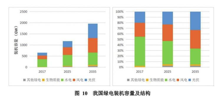 綠色電力中,光伏與風電貢獻最大。預計到2025年,風、光占比將分別提升至13%、11%;2035年將分別提升至18%、13%。