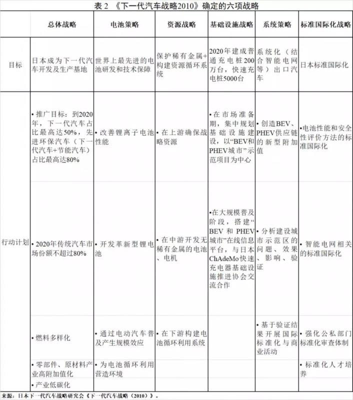 2010年4月,由日本經(jīng)濟產(chǎn)業(yè)省(簡稱“經(jīng)產(chǎn)省”)牽頭的“下一代汽車戰(zhàn)略研究會”發(fā)布《下一代汽車戰(zhàn)略(2010)》,該文件是日本首份專門針對發(fā)展下一代汽車的戰(zhàn)略規(guī)劃類文件,也是后續(xù)產(chǎn)業(yè)發(fā)展的綱領性文件,圍繞實現(xiàn)下一代汽車市場目標,從電池、資源、基礎設施和標準國際化制定等方面制定了發(fā)展戰(zhàn)略、目標及行動計劃。