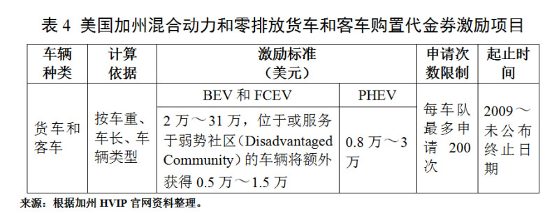 CARB在2009年啟動了混合動力和零排放貨車和客車購置代金券激勵項目(HVIP, The Hybrid and Zero-Emission Truck and Bus Voucher Incentive Project),為購買符合條件的電動(包括BEV、FCEV、PHEV、HEV等)貨車和客車的購買者提供補貼。2019年10月,CARB對車型范圍等內(nèi)容進行了調(diào)整,HEV和純電續(xù)駛里程低于35英里(約合56公里)的PHEV不再享受補貼。