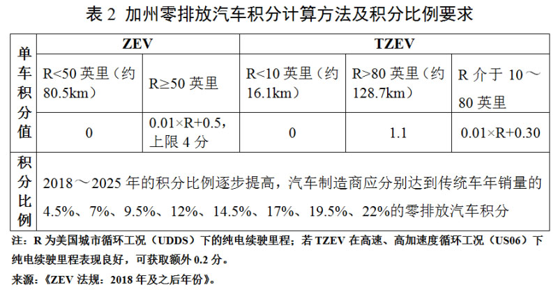 (一)零排放汽車積分。加州零排放汽車法案通過強制規(guī)定汽車制造商零排放汽車銷售比例和允許積分交易相結(jié)合的方式,迫使汽車制造商推廣零排放汽車。一是以排放清潔程度綜合表現(xiàn)劃分車輛種類和積分值。BEV、燃料電池汽車(FCEV)為零排放汽車(ZEV),積分值較高;尾氣排放、燃料蒸發(fā)排放等綜合排放達到標準的PHEV為過渡性零排放汽車(TZEV),積分值較低;部分增程式電動汽車享受零排放汽車待遇。二是要求銷量達到一定規(guī)模的傳統(tǒng)燃油汽車制造商必須具備零排放汽車積分。在加州汽車銷售量達到10000輛以上的大中型汽車制造商必須具備一定的零排放汽車積分,以汽車制造商傳統(tǒng)汽車年銷量乘以零排放汽車比例要求來確定汽車制造商應(yīng)達到的積分目標,且積分比例要求逐年提高。三是汽車制造商可以通過銷售零排放汽車或購買其他汽車制造商富余積分來滿足積分目標要求,否則必須按照《健康安全法》要求向加州政府繳納每個積分5000美元的罰款。四是加州允許汽車制造商使用聯(lián)邦GHG積分抵償部分零排放汽車積分。汽車制造商依據(jù)聯(lián)邦溫室氣體(GHG,Green House Gas)法規(guī)獲得的富余GHG積分可以在2018~2021年抵償加州ZEV積分,但加州ZEV富余積分不能抵償聯(lián)邦GHG積分。汽車制造商需在2016年底之前申請享受該政策,并承諾其GHG排放水平將在2018~2021年優(yōu)于其企業(yè)平均GHG排放目標值至少2g CO2/英里。但ZEV積分不得全部由GHG富余積分抵償,2018~2021年抵償上限分別為50%、50%、40%、30%。