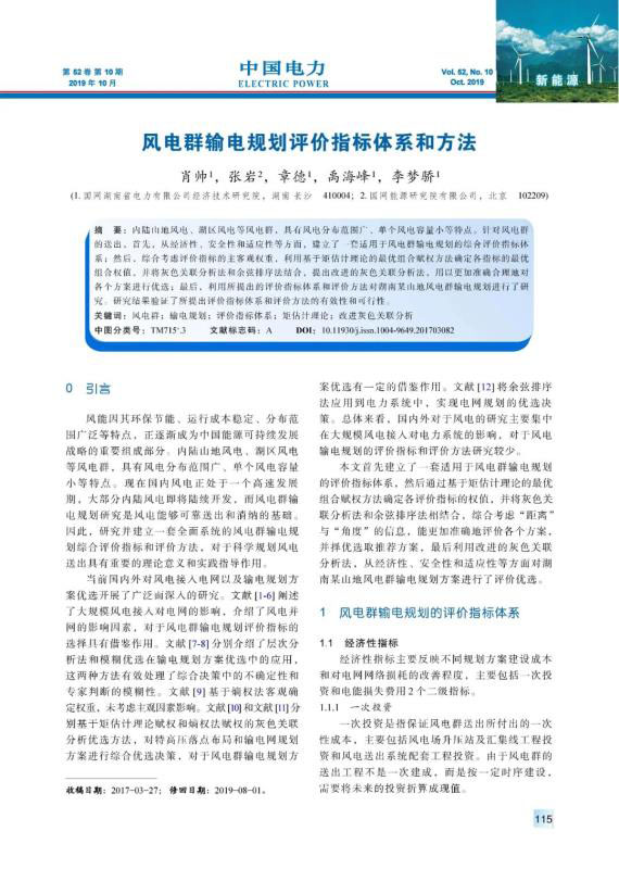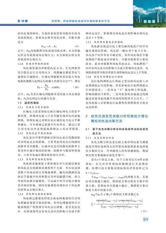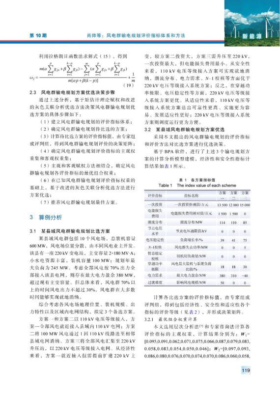 內(nèi)陸山地風電、湖區(qū)風電等風電群,具有風電分布范圍廣、單個風電容量小等特點。針對風電群的送出,首先,從經(jīng)濟性、安全性和適應性等方面,建立了一套適用于風電群輸電規(guī)劃的綜合評價指標體系;然后,綜合考慮評價指標的主客觀權重,利用基于矩估計理論的最優(yōu)組合賦權方法確定各指標的最優(yōu)組合權值,并將灰色關聯(lián)分析法和余弦排序法結(jié)合,提出改進的灰色關聯(lián)分析法,用以更加準確合理地對各個方案進行優(yōu)選;最后,利用所提出的評價指標體系和評價方法對湖南某山地風電群輸電規(guī)劃進行了研究。研究結(jié)果驗證了所提出評價指標體系和評價方法的有效性和可行性。