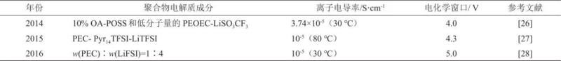 聚碳酸乙烯酯(PEC)基全固態(tài)聚合物電解質的電化學性能,如表3所示。