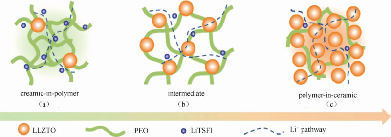 圖2 PEO/LLZTO/LiTFSI不同比例復合全固態(tài)電解質的示意圖