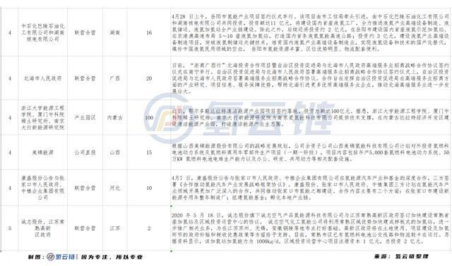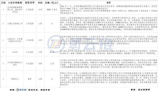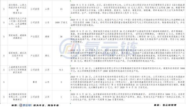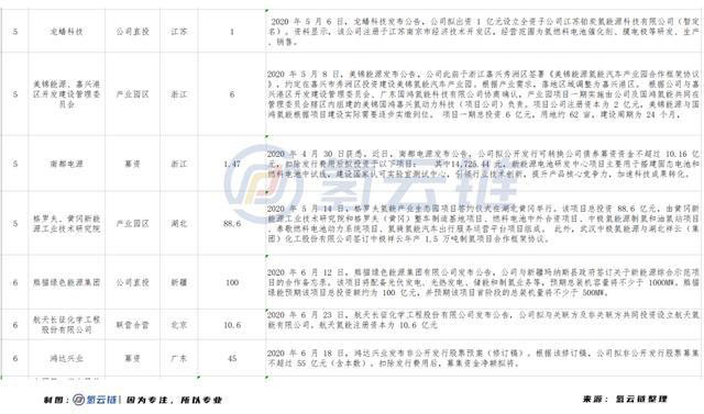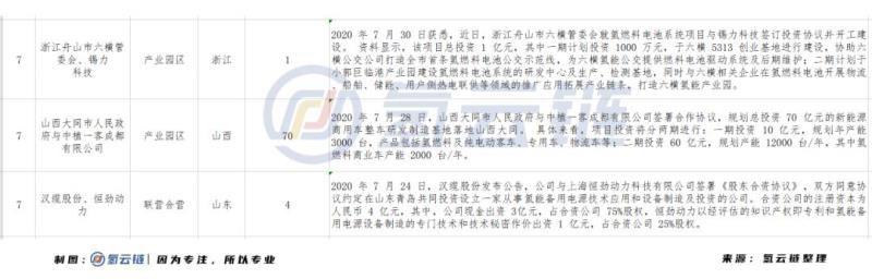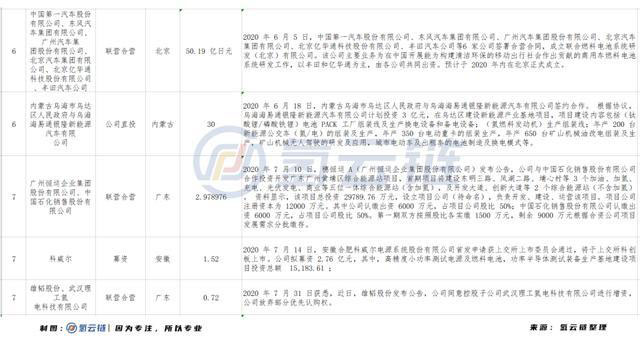 氫云鏈按照時間順序,對2020年1-7月氫能相關(guān)行業(yè)投資整理如下: