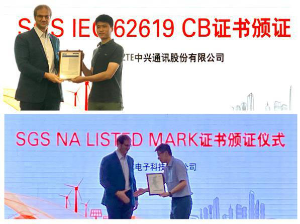 上圖:SGS消費(fèi)電子產(chǎn)品事業(yè)部首席簽證官M(fèi)r. Mark Lohmann(左)向ZTE中興通訊股份有限公司(右)頒發(fā)IEC 62619 CB證書