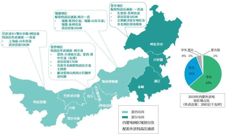 內(nèi)蒙古外送電部分是通過蒙西電網(wǎng)與華北電網(wǎng)互聯(lián)、蒙東電網(wǎng)與東北電網(wǎng)互聯(lián)送出,還有較大比例是通過內(nèi)蒙古境內(nèi)已經(jīng)投運(yùn)的“三交三直”特高壓工程送出(錫盟-山東、蒙西-天津南、錫盟-勝利特高壓交流,錫盟-泰州、上海廟-臨沂、扎魯特-青州特高壓直流),內(nèi)蒙古目前特高壓外送能力4400萬千瓦,此外還有蒙西-晉中特高壓交流通道在建,建成后特高壓外送能力將達(dá)到5300萬千瓦。