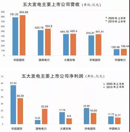 華能國際、國電電力、大唐發(fā)電、華電國際、中國電力近日陸續(xù)發(fā)布今年上半年業(yè)績報(bào)告。半年報(bào)顯示,各公司營收均較上年同期出現(xiàn)小幅減少,但得益于燃料成本大幅降低,除國電電力因控股子公司破產(chǎn)清算,業(yè)績受顯著拖累外,其余四家歸屬股東凈利潤均有較大幅度增長。