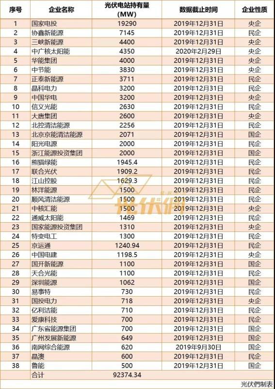 而華能,大唐則在去年開始加大了光伏、風(fēng)電的投資,加快清潔化低碳化的轉(zhuǎn)型。據(jù)悉,2020年上半年華能集團(tuán)新能源項(xiàng)目開工46個(gè)、共計(jì)4.2GW;新增并網(wǎng)945MW。目前,這兩家企業(yè)的光伏裝機(jī)規(guī)模已正式邁入4GW+行列。