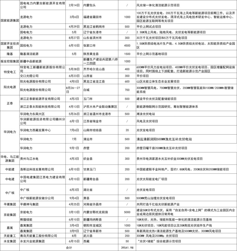 備注:上表匯總了自1月起各企業(yè)簽署擬投建的光伏項(xiàng)目,因項(xiàng)目較多,如有疏漏,歡迎在評論區(qū)留言修正。