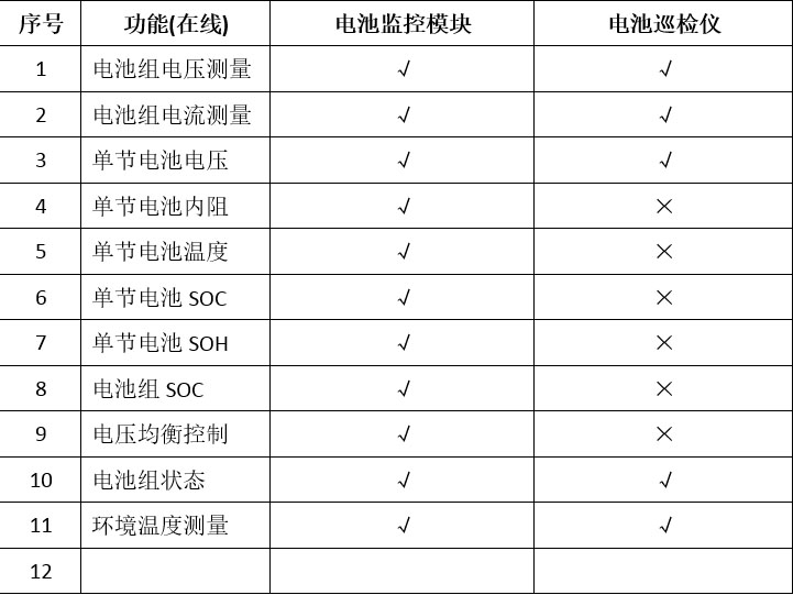 另外,在一些常見的后備電源系統(tǒng)中,有可能會(huì)配備傳統(tǒng)的電池巡檢儀。電池巡檢儀雖然也能在線測量,但它主要測量點(diǎn)對(duì)象是單體電池電壓,而蓄電池的內(nèi)阻、溫度、SOC和SOH這些核心參數(shù),卻無法及時(shí)得到體現(xiàn)。如下圖: