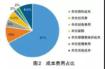 根據(jù)典型燃機(jī)數(shù)據(jù)分析,純凝發(fā)電成本約0.6元/千瓦時(shí)、熱電聯(lián)產(chǎn)發(fā)電成本約0.56元/千瓦時(shí)、分布式能源0.66元/千瓦時(shí)。燃機(jī)發(fā)電成本費(fèi)用中燃料成本占比最高,約為67%,其余依次為折舊10%、其他費(fèi)用8.5%、薪酬5.5%、財(cái)務(wù)費(fèi)用5%、修理維護(hù)費(fèi)用2%等。目前看,修理費(fèi)用在每年燃機(jī)成本中占比較小,但在一個(gè)大修周期內(nèi),費(fèi)用十分可觀。常規(guī)情況下,9F機(jī)組大修期48000~66000小時(shí),修理費(fèi)用約1.5億元/臺(tái)·大修期;9E機(jī)組大修期32000~66000小時(shí),修理費(fèi)用約1億元/臺(tái)·大修期;分布式能源大修期25000~50000小時(shí),修理費(fèi)用約0.7億元/臺(tái)·大修期。其中,分布式燃機(jī)造價(jià)普遍較高,區(qū)域式分布式能源造價(jià)在5000~8000元/千瓦,樓宇式分布式能源造價(jià)普遍在15000~20000元/千瓦,導(dǎo)致固定成本較高(見圖2)。