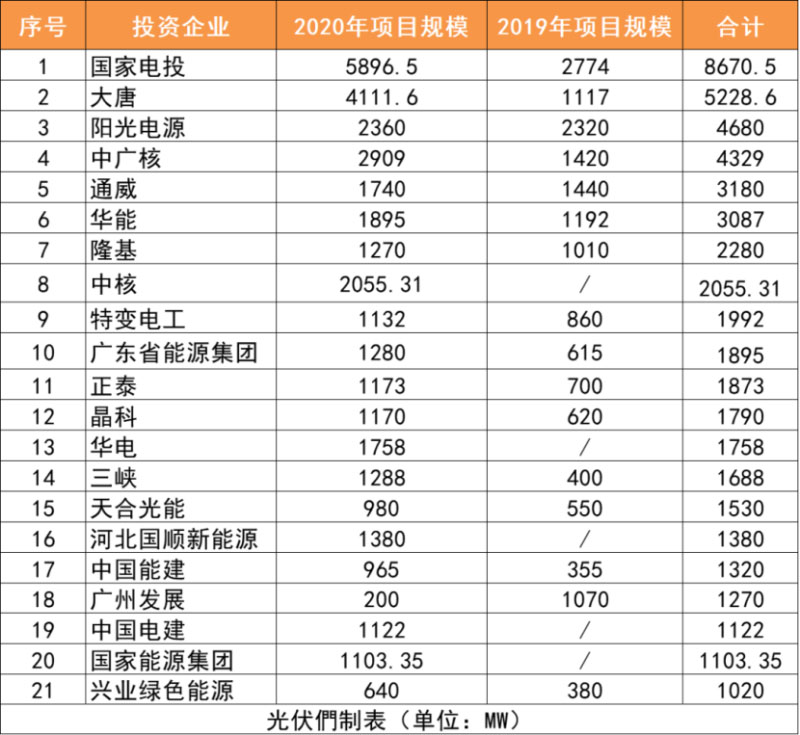 另一方面,以國家電投、大唐、中廣核、中核、華電、華能、國家能源集團(tuán)為代表的央企獲批規(guī)模基本均呈現(xiàn)出翻倍增長的勢頭,尤其是大唐、中核、華電這三家2020年項(xiàng)目獲批規(guī)模暴增,成為當(dāng)之無愧的“黑馬”。值得一提的是,此前不少專注于水電、風(fēng)電項(xiàng)目開發(fā)的投資商、設(shè)計院等也在將目光轉(zhuǎn)向光伏電站,例如風(fēng)電巨無霸國家能源集團(tuán)也在2020年開啟了光伏電站投資之旅,并且計劃在“十四五”期間加大光伏投資力度。