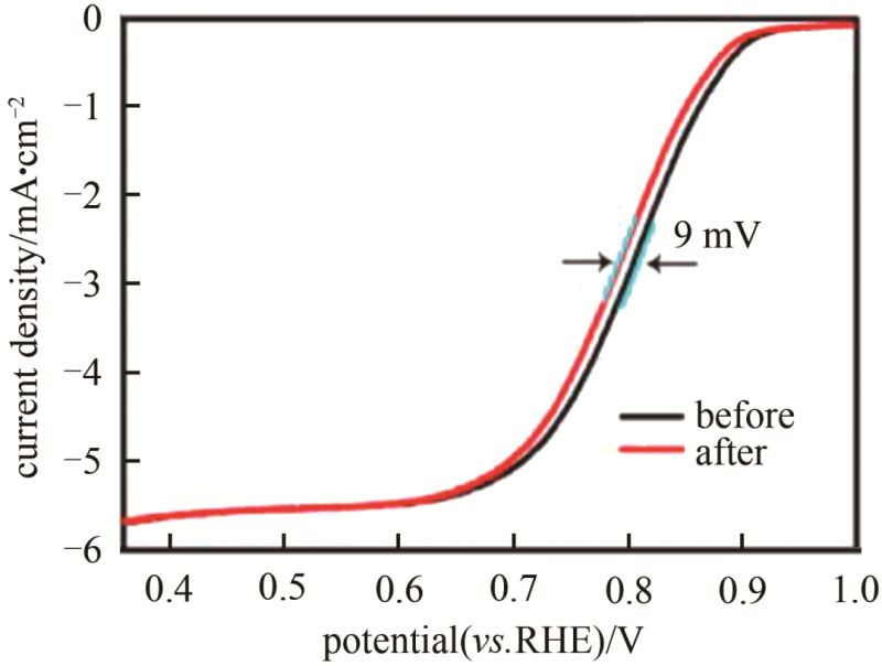 圖5 NiCo2O4@N-CNWs經(jīng)過(guò)5000次循環(huán)后的LSV圖