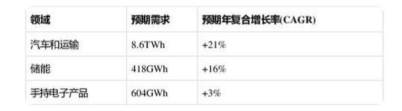 IHS Markit預(yù)計,2020年-2030年間,電池需求將出現(xiàn)如下增長: