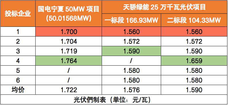對比兩個項(xiàng)目報(bào)價可以發(fā)現(xiàn),國電寧夏項(xiàng)目投標(biāo)均價要比天驕綠能項(xiàng)目高出0.13-0.14元/瓦,這與兩個項(xiàng)目不同的組件交付時間密切相關(guān)。