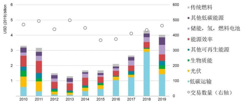 報告稱,2019年風險投資保持強勁,投資額達到40億美元,清潔能源技術初創(chuàng)企業(yè)的行業(yè)和國家更加多樣化,氫能和儲能增長最快(圖2),美國、歐洲和中國在全球能源風險投資活動中的份額有所增長。