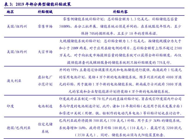海外政策力度更大,國(guó)內(nèi)儲(chǔ)能的補(bǔ)貼及指標(biāo)性政策仍然不足。根據(jù) CNESA 整理,海外 多個(gè)國(guó)家、地區(qū)或州政府出臺(tái)補(bǔ)貼政策,來(lái)促進(jìn)儲(chǔ)能的生產(chǎn)以及在不同領(lǐng)域的安裝和應(yīng)用, 如美國(guó)加州的 SGIP 政策、德國(guó)、澳洲部分州政府等。反觀國(guó)內(nèi),儲(chǔ)能的補(bǔ)貼及指標(biāo)性政策 仍然不足。展望“十四五”,隨著風(fēng)光、新能源汽車行業(yè)全面市場(chǎng)化,儲(chǔ)能有望得到更好的實(shí)質(zhì)性支持,或迎來(lái)新的政策窗口期。