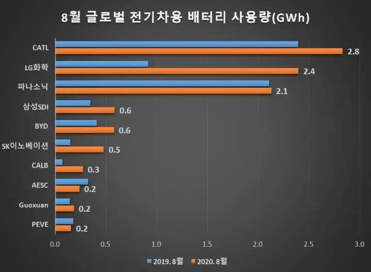 全球頭部企業(yè)的較量再生變故。據(jù)韓國SNE Research統(tǒng)計數(shù)據(jù),在被LG化學(xué)今年連續(xù)多月奪走全球動力電池裝機(jī)量NO.1之后,寧德時代在今年8月,終于扳回一局,重回全球冠軍寶座。今年8月,寧德時代以2.8GWh的動力電池裝機(jī)量,領(lǐng)先LG化學(xué)2.4GWh裝機(jī)量,重回全球榜首。
