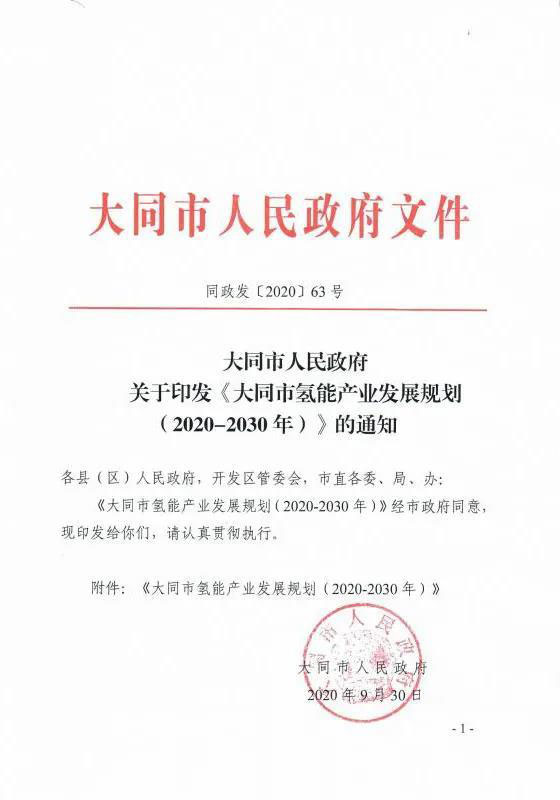 山西省大同市人民政府近日發(fā)布《大同市氫能產(chǎn)業(yè)發(fā)展規(guī)劃(2020-2030年)》,提出將大同市打造成具有全國甚至全球示范作用的東方氫都。