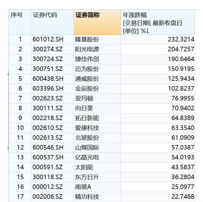 對于資本而言,明確且巨大的目標(biāo)市場更具吸引力。異質(zhì)結(jié)因此成為了眼下最受關(guān)注的光伏產(chǎn)業(yè)化技術(shù)。Wind資訊數(shù)據(jù)顯示,愛康科技、通威股份、山煤國際、東方日升股價一年內(nèi)的漲跌幅分別為63.35%、125.94%、57.03%、36.28%。