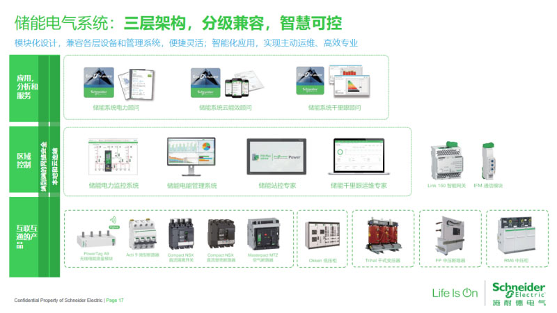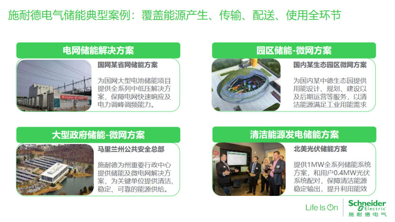 施耐德電氣可以幫助儲(chǔ)能行業(yè)做很多事情,無論是發(fā)電端、變電、輸電到最后的用電,都有很多案例。例如我們給國網(wǎng)儲(chǔ)能的方案,幫助他們儲(chǔ)能設(shè)備從元器件、設(shè)備到第二層系統(tǒng)實(shí)現(xiàn)了更高可靠有效的應(yīng)用。同樣,我們在園區(qū)微網(wǎng)用電、光伏項(xiàng)目等等場合都有很好的應(yīng)用,幫助客戶實(shí)現(xiàn)了更高的投資回報(bào)率。