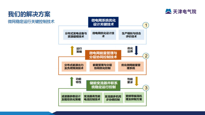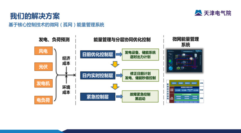 那如何解決微電網(wǎng)供電穩(wěn)定性的問題?基于儲能系統(tǒng)和相關(guān)的控制技術(shù)去構(gòu)建微網(wǎng)運行解決方案。上午科華的領(lǐng)導(dǎo)也有提到關(guān)鍵環(huán)節(jié)的突破系統(tǒng),包括重新啟動、多機并列,這些也是相關(guān)的研究領(lǐng)域。