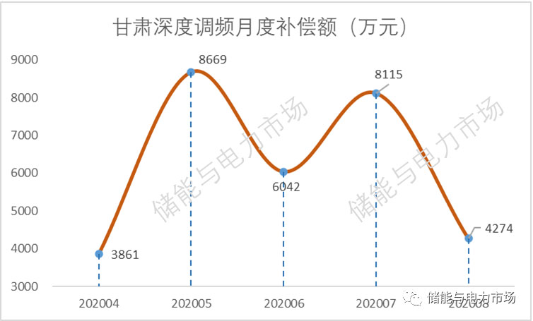 相對(duì)于調(diào)頻較低的補(bǔ)償總額,深度調(diào)峰補(bǔ)償額高了很多,部分月份超過(guò)了8000萬(wàn)。