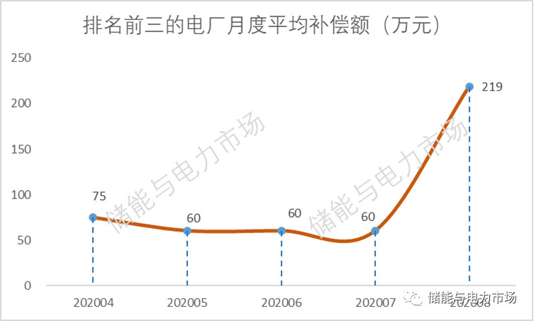 而排名前三的電廠平均月補(bǔ)償額,也從60萬(wàn)左右上升到了超過(guò)200萬(wàn)。