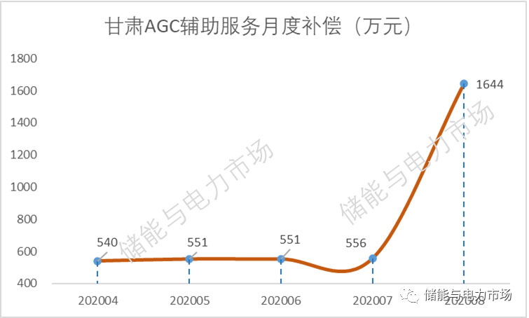 從數(shù)據(jù)上看,甘肅省的AGC月度補(bǔ)償額度不大,基本位于500萬(wàn)左右。但2020年8月份出現(xiàn)了一次大的提升,較2020年7月份556萬(wàn)增加了195.82%,達(dá)到1664萬(wàn)元。