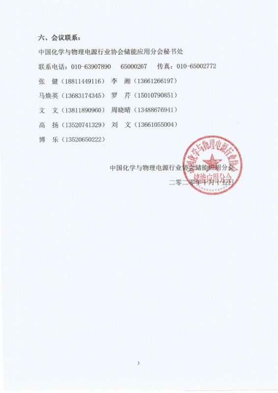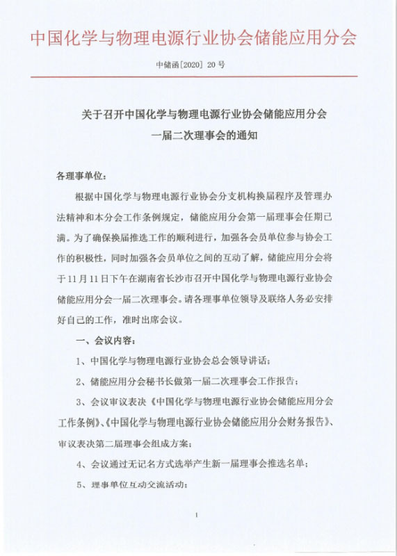 關(guān)于召開中國化學(xué)與物理電源行業(yè)協(xié)會儲能應(yīng)用分會一屆二次理事會的通知