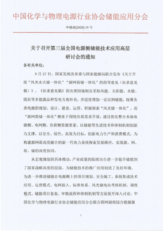為進(jìn)一步推進(jìn)儲(chǔ)能在電源側(cè)上的項(xiàng)目規(guī)劃、安全施工、系統(tǒng)集成技術(shù)應(yīng)用、運(yùn)營(yíng)模式、電網(wǎng)接入、標(biāo)準(zhǔn)體系、風(fēng)光儲(chǔ)電站考核機(jī)制、調(diào)度模式、儲(chǔ)能項(xiàng)目備案、審批流程和體制機(jī)制等方面展開(kāi)深入討論,中國(guó)化學(xué)與物理電源行業(yè)協(xié)會(huì)儲(chǔ)能應(yīng)用分會(huì)聯(lián)合國(guó)網(wǎng)湖南綜合能源服務(wù)有限公司、國(guó)網(wǎng)湖南省電力有限公司電力科學(xué)研究院、中國(guó)能源建設(shè)集團(tuán)湖南省電力設(shè)計(jì)院有限公司、科華恒盛股份有限公司、中國(guó)科學(xué)院電工研究所儲(chǔ)能技術(shù)組等單位于2020年11月10—11日在湖南省長(zhǎng)沙市召開(kāi)“第三屆全國(guó)電源側(cè)儲(chǔ)能技術(shù)應(yīng)用高層研討會(huì)”。