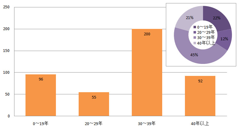圖3 全球在運(yùn)核電機(jī)組運(yùn)行年限