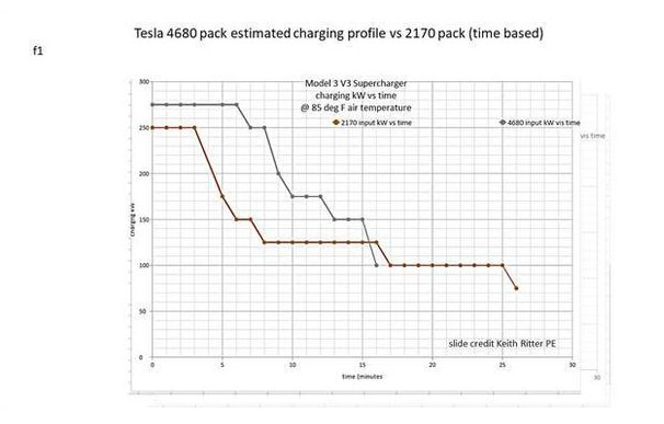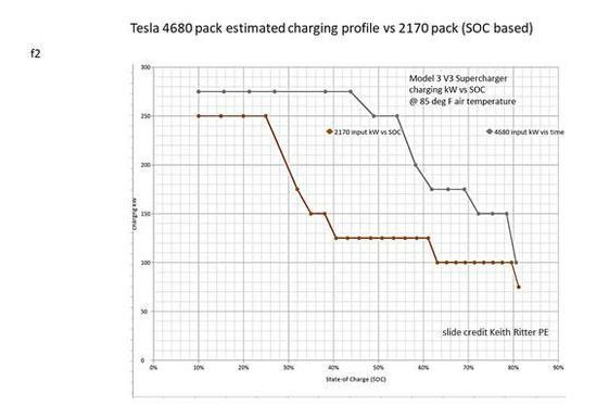 按充電狀態(tài)顯示的2170電池組與4680電池組(估算)充電特性比較