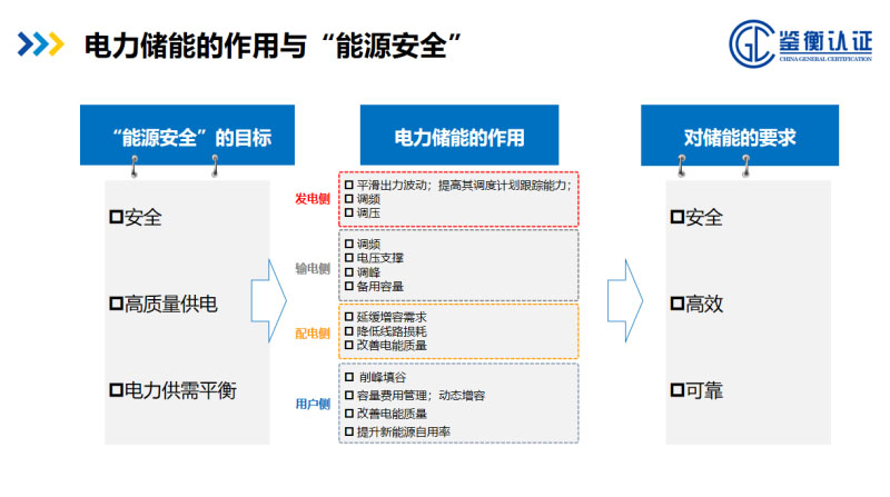 參會的專家們都有非常豐富的儲能技術(shù)應(yīng)用方面的經(jīng)驗,說明儲能確實被大家認(rèn)為有很好的技術(shù)特點,也有可以被應(yīng)用的場景。我這里簡單列了幾個方面,比如在發(fā)電側(cè),應(yīng)用儲能技術(shù)可以平滑發(fā)電機組出力波動,提高其調(diào)度計劃可靠性,在輸電側(cè)應(yīng)用儲能技術(shù)可以起到調(diào)配、調(diào)壓和支撐電網(wǎng)電壓的作用,在配電側(cè)應(yīng)用儲能技術(shù)可以改善電能質(zhì)量和降低增容成本,在用戶側(cè)應(yīng)用儲能技術(shù)最直觀的是可以利用削峰填谷降低用電成本。講到儲能,電力供給上因為晝夜差異、季節(jié)差異,供需會有很大的波動,這對電網(wǎng)造成很大的沖擊。把儲能技術(shù)定義為一個產(chǎn)品,首先它自己應(yīng)該是安全高效可靠的,否則它本身就是一個能源安全不穩(wěn)定的因素。