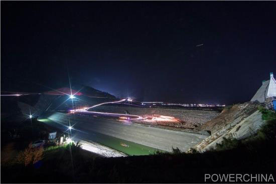 下水庫大壩為混凝土面板堆石壩,1級建筑物。正常蓄水位319米,大壩壩頂長375米,最大壩高49米。大壩于5月截流、10月實現(xiàn)封頂,歷時5個月完成施工任務(wù)。大壩填筑完成標志著左右岸連接的壩頂公路即將貫通,為日后的施工提供便捷條件。