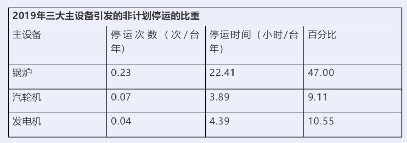 三大主設(shè)備中,鍋爐引起的非計劃停運臺年平均為0.23次、22.41小時,占全部燃煤機組非計劃停運總時間的47%,是主要的非計劃停運部件。鍋爐、汽輪機、發(fā)電機三大主設(shè)備引發(fā)的非計劃停運占全部燃煤機組非計劃停運總時間的66.66%。