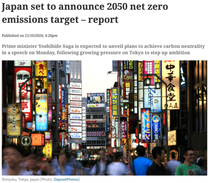 在中國上個月意外宣布中國將在2060年實現(xiàn)碳中和以及韓國今年早些時候的類似計劃之后,日本面臨著澄清其長期目標的壓力。2050年的碳中和目標確定之后,日本也必須修訂2030年能源規(guī)劃。根據(jù)現(xiàn)有的能源規(guī)劃,2030年可再生能源預計將提供22-24%的發(fā)電量,核能占22-20%,而煤炭、石油和天然氣仍占能源結(jié)構(gòu)的56%(煤電占至少還占26%)。
