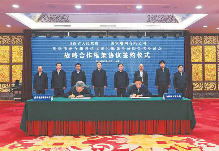 毛偉明感謝山西省委、省政府長(zhǎng)期以來(lái)對(duì)國(guó)家電網(wǎng)公司的支持與幫助。他表示,山西經(jīng)濟(jì)運(yùn)行穩(wěn)中向好,轉(zhuǎn)型步伐強(qiáng)勁有力,綜合改革縱深推進(jìn),民生福祉持續(xù)改善,三晉大地處處呈現(xiàn)著蒸蒸日上、蓬勃發(fā)展的良好態(tài)勢(shì)。伴隨著山西經(jīng)濟(jì)社會(huì)的快速發(fā)展,山西電網(wǎng)也取得了長(zhǎng)足進(jìn)步?!笆濉逼陂g,發(fā)展總投入達(dá)到759億元,形成特高壓“三交一直”、超高壓“三縱四橫”骨干網(wǎng)架,通過(guò)9個(gè)外送通道,與華北、華東、華中電網(wǎng)連接,電力外送能力達(dá)到3830萬(wàn)千瓦,累計(jì)外送電量近2000億千瓦時(shí)。新能源消納比例達(dá)到97.7%。農(nóng)村戶均配變?nèi)萘刻嵘?.37千伏安,較“十二五”末增長(zhǎng)57%,較好地滿足了山西經(jīng)濟(jì)社會(huì)發(fā)展用電需求。今年2月,在統(tǒng)籌疫情防控和經(jīng)濟(jì)社會(huì)發(fā)展的關(guān)鍵時(shí)刻,率先開(kāi)工建設(shè)山西垣曲抽蓄電站,助推企業(yè)復(fù)工復(fù)產(chǎn),極大提振了發(fā)展信心,穩(wěn)定了社會(huì)預(yù)期。山西是我國(guó)的煤炭大省、能源大省,經(jīng)濟(jì)發(fā)展、電力先行,能源革命、電為中心。國(guó)家電網(wǎng)公司將深入貫徹習(xí)近平總書(shū)記對(duì)山西工作的重要講話和指示精神,落實(shí)好能源革命綜合改革試點(diǎn)要求,當(dāng)好電力先行官,一如既往、全力以赴支持山西轉(zhuǎn)型發(fā)展。一是全力服務(wù)好山西能源革命綜合改革試點(diǎn)。主動(dòng)承接改革任務(wù),用好山西電力市場(chǎng)先發(fā)優(yōu)勢(shì),持續(xù)激發(fā)市場(chǎng)活力。充分發(fā)揮電網(wǎng)配置能源資源的樞紐平臺(tái)作用,擴(kuò)大“晉電外送”規(guī)模,加大電能替代力度,積極服務(wù)新能源發(fā)展,推動(dòng)山西能源結(jié)構(gòu)和布局優(yōu)化。二是全力推進(jìn)好山西電網(wǎng)高質(zhì)量發(fā)展。高標(biāo)準(zhǔn)編制山西電網(wǎng)“十四五”規(guī)劃,持續(xù)加大投資力度,積極推動(dòng)“兩交”特高壓落地工程核準(zhǔn)建設(shè),加快山西電網(wǎng)500千伏西電東送通道調(diào)整等工程建設(shè)。著力加快城鄉(xiāng)配電網(wǎng)發(fā)展,持續(xù)提升農(nóng)村電網(wǎng)供電保障能力。三是全力優(yōu)化好山西電力營(yíng)商環(huán)境。嚴(yán)格執(zhí)行降電價(jià)政策,推廣“網(wǎng)上國(guó)網(wǎng)”,實(shí)施“陽(yáng)光業(yè)擴(kuò)”工程,進(jìn)一步精簡(jiǎn)環(huán)節(jié)、壓縮時(shí)間,提高辦電效率和服務(wù)質(zhì)量,讓辦電更省時(shí)、更省心、更省錢(qián),用電更可靠、更經(jīng)濟(jì)、更安全,切實(shí)增強(qiáng)人民群眾的獲得感、幸福感。四是全力促進(jìn)好山西產(chǎn)業(yè)轉(zhuǎn)型升級(jí)。在綜合能源服務(wù)、能源大數(shù)據(jù)應(yīng)用等方面持續(xù)發(fā)力,帶動(dòng)產(chǎn)業(yè)鏈上下游共同發(fā)展。聚焦新型數(shù)字基礎(chǔ)設(shè)施建設(shè),年內(nèi)投資6.6億元用于1.5萬(wàn)個(gè)5G基站配套電網(wǎng)建設(shè)改造。加快電網(wǎng)數(shù)字化改造升級(jí),提升電網(wǎng)感知能力、互動(dòng)水平、運(yùn)行效率。