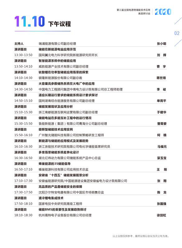 本次高層研討會(huì)以“引領(lǐng)電源側(cè)儲(chǔ)能工程應(yīng)用 推進(jìn)儲(chǔ)能產(chǎn)業(yè)高質(zhì)量發(fā)展”為主題,將邀請(qǐng)儲(chǔ)能領(lǐng)域?qū)<覍W(xué)者、政府主管部門領(lǐng)導(dǎo)、新能源業(yè)主單位、發(fā)電集團(tuán)、設(shè)計(jì)院、電網(wǎng)公司、系統(tǒng)集成商以及投融資機(jī)構(gòu)企業(yè)負(fù)責(zé)人及相關(guān)產(chǎn)業(yè)代表等共同參與探討和交流。以下為主要議程:
