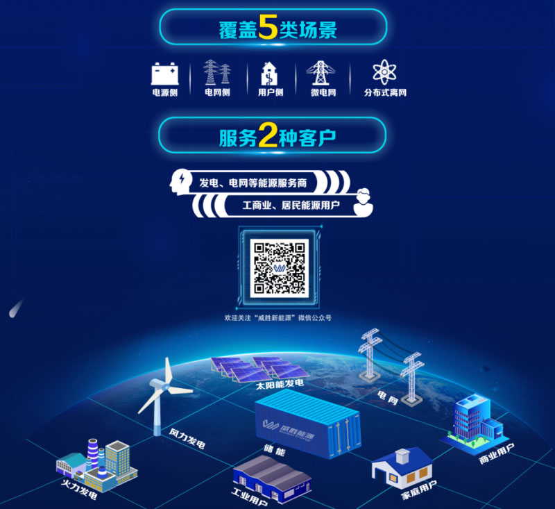 儲能,是實現(xiàn)“智慧能源”的重要手段,威勝“儲能+”屬于“新能源+”內(nèi)涵,是公司未來著重發(fā)展的業(yè)務(wù)。為了更好地服務(wù)客戶,威勝針對大型能源系統(tǒng)、微電網(wǎng)、分布式離網(wǎng)系統(tǒng)提出 5 類儲能應(yīng)用場景,分別提供解決方案與服務(wù)。