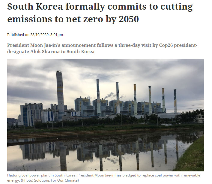 輿論界對韓國的凈零排放承諾表示歡迎,但指出韓國要實現(xiàn)碳中和的目標(biāo),需要徹底淘汰煤炭。最緊迫的任務(wù)是提高2030年的減排目標(biāo),提出到2030年逐步淘汰煤炭的明確路線圖,并徹底停止煤炭融資。據(jù)全球能源監(jiān)測數(shù)據(jù)顯示,韓國目前擁有36吉瓦的煤電裝機,提供了40%以上的發(fā)電量,另有7.2吉瓦正在建設(shè)中,而可再生能源目前在全國能源結(jié)構(gòu)中所占比例不到6%。