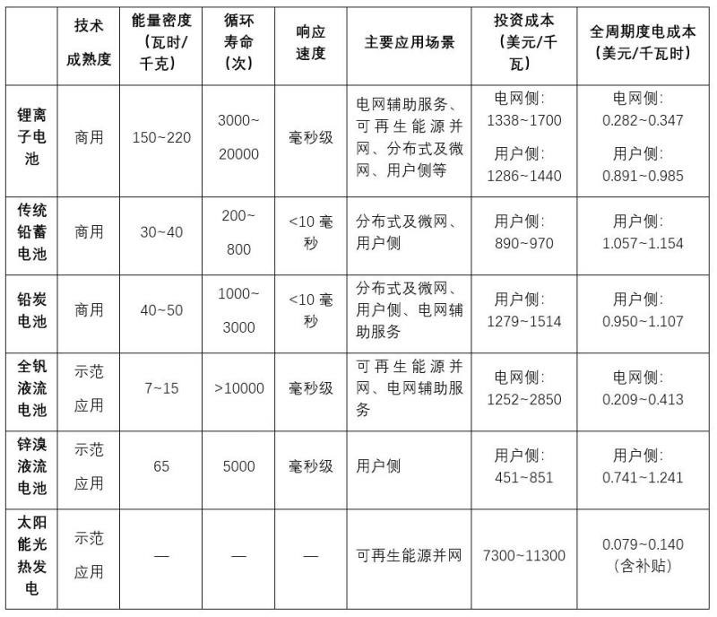 綜合對(duì)比技術(shù)與經(jīng)濟(jì)指標(biāo)、產(chǎn)業(yè)應(yīng)用情況,關(guān)于電化學(xué)儲(chǔ)能技術(shù):鋰離子電池綜合性能較好,應(yīng)用場(chǎng)景綜合,成本下降較快,裝機(jī)占比大,未來(lái)仍將是美國(guó)儲(chǔ)能產(chǎn)業(yè)發(fā)展的重點(diǎn);鉛蓄電池性能較差,應(yīng)用場(chǎng)景受限,成本下降空間小,裝機(jī)占比小,傳統(tǒng)鉛蓄電池將逐漸被取代,鉛炭電池性能有所提升但競(jìng)爭(zhēng)力有限;液流電池技術(shù)成熟度、商業(yè)化程度較低,裝機(jī)占比小,短期內(nèi)大規(guī)模應(yīng)用可能性不高。關(guān)于儲(chǔ)熱技術(shù):太陽(yáng)能光熱發(fā)電是唯一可同時(shí)實(shí)現(xiàn)友好并網(wǎng)與有效調(diào)峰的可再生能源發(fā)電技術(shù),調(diào)節(jié)性能良好,是美國(guó)應(yīng)用規(guī)模最大、最為成熟的儲(chǔ)熱技術(shù),但受投資成本和占地面積所限,大規(guī)模應(yīng)用仍需大幅降低成本和依靠政策支持。