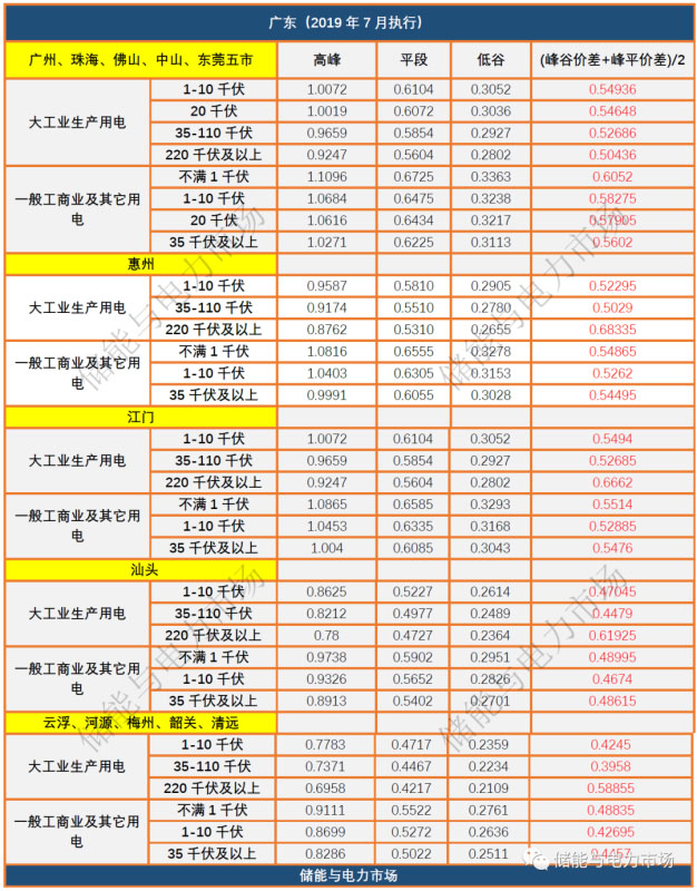 這些區(qū)域的詳細的工商業(yè)峰谷電價情況如下。
