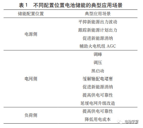 電池儲(chǔ)能電站可靈活配置在電力系統(tǒng)的電源側(cè)、電網(wǎng)側(cè)、負(fù)荷側(cè),滿足差異化儲(chǔ)能應(yīng)用需求,不同配置位置電池儲(chǔ)能的典型應(yīng)用場(chǎng)景見(jiàn)表1。