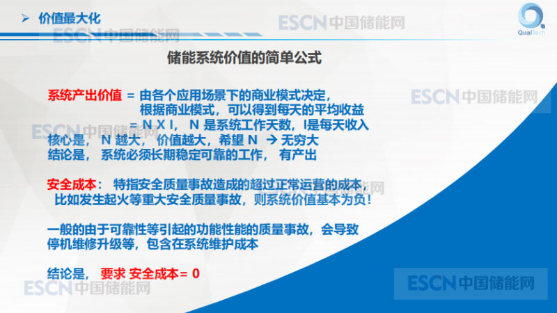 運營成本,這也是不可小覷的,投資回報的角度,大家都有投資模型,這個模型做一些運營的假設(shè),運營假設(shè)前提取決于系統(tǒng)里面的各個零部件的質(zhì)量,他的安全性和可靠性以及長期的可靠性。還包括這個過程當(dāng)中,電池本身的潛力能不能充分的挖掘出來,充分的把壽命延長。