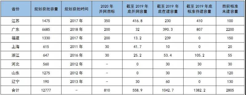 海上風(fēng)電主要省份裝機規(guī)劃和建設(shè)情況